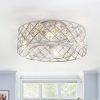 19 Inch; Caged Ceiling Fans with Lights, Low Profile Flush Mount Ceiling Fan with DC Motor Remote Control, 7 Reversible Transparent Blades, 6-Speed, Modern Bladeless Enclosed Ceiling Fan for Bedroom