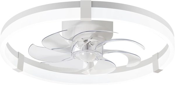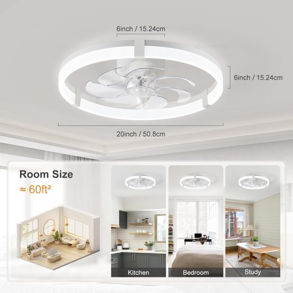 20 Inch; Ceiling Fan with Lights and Remote, Low Profile Flush Mount LED Fan, Modern White Fandelier with Quiet DC Motor, 6 Speeds, 3000K-7000K Dimmable Light for Bedroom, Living Room, Dining