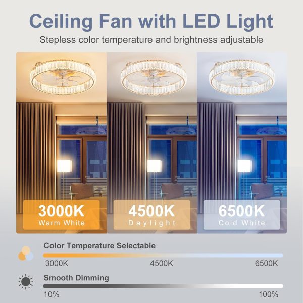 3-Color Dimmable LED Light This 20 inch bladeless ceiling fan comes with a 3-color dimmable LED light, allowing you to switch between warm white (3000K), natural white (4500K), and cool white (6500K) with just one click on the remote. The high-quality LED chips deliver soft, flicker-free illumination, saving energy while providing long-lasting performance.
