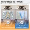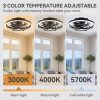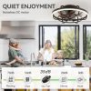 20 Inch; Flush Mount Caged Ceiling Fans with Lights and Remote, 6-Speed Reversible DC Motor, 3-Color Led Light, Modern Low Profile Enclosed Ceiling Fan for Bedroom Living Room, Black