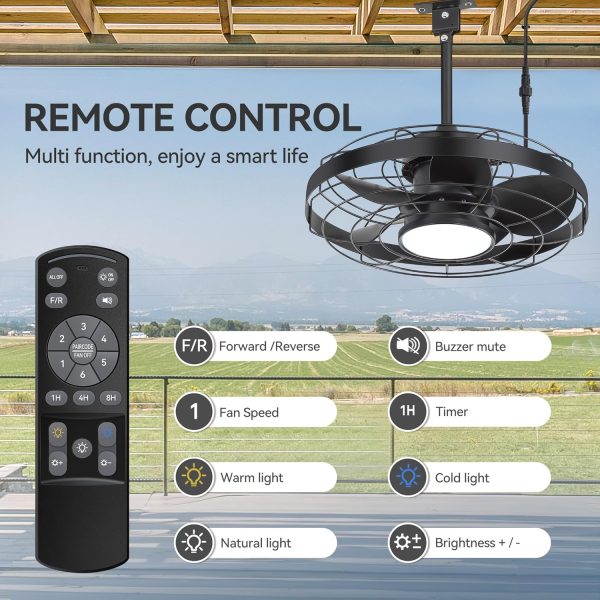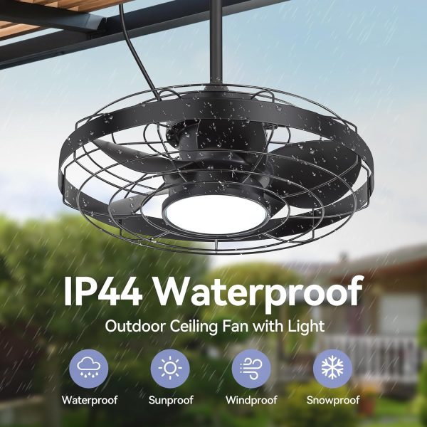 Waterproof Outdoor Fan with Light: This 20" ceiling fan is built for outdoor durability, with a matte black body, acrylic light shade, and sturdy ABS blades. It offers waterproof performance, ideal for gazebos, patios, porches, gardens, pergolas, and backyards