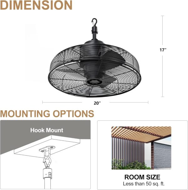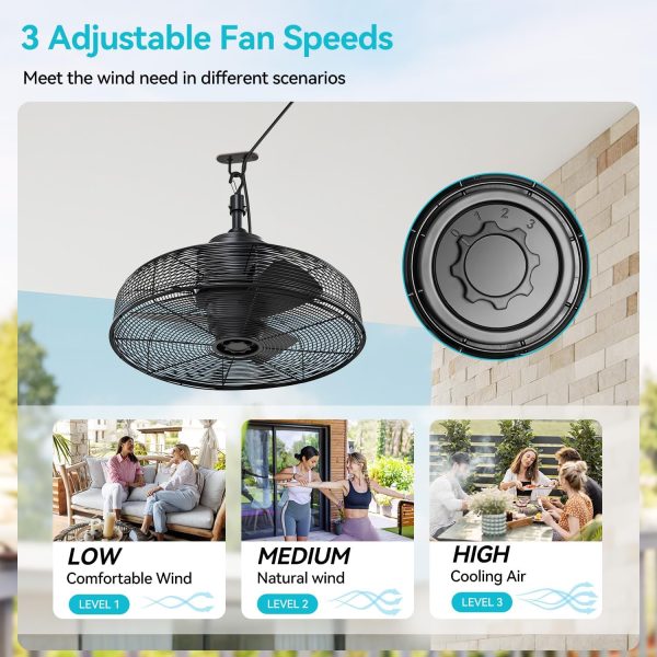 Plug-and-Play Installation: Designed for convenience, this hanging fan comes with a plug-in cord, eliminating the need for complex wiring and enabling easy installation in various outdoor settings.