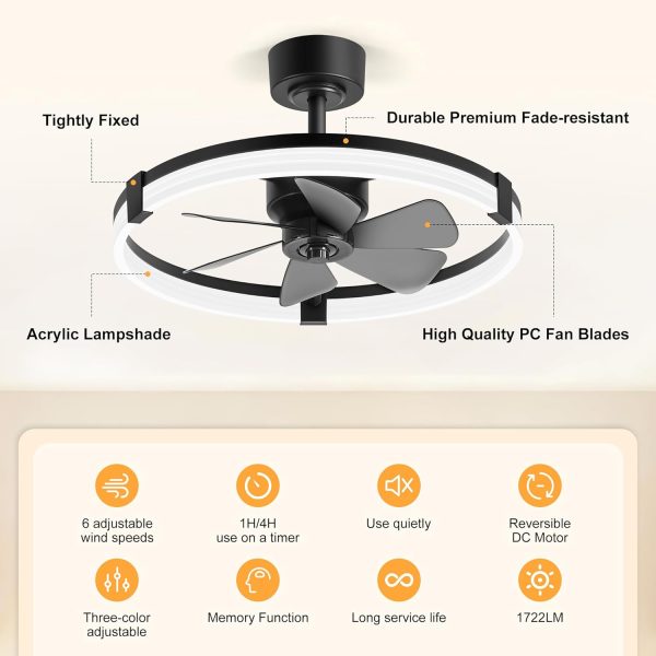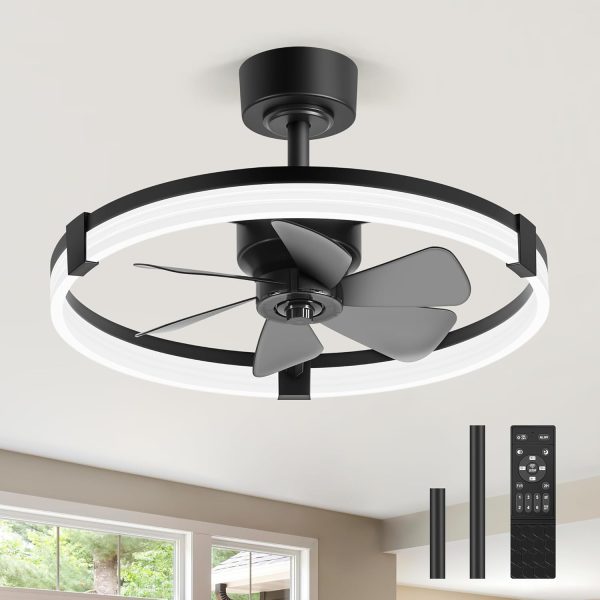 Powerful 6-Blade Enclosed Design This 23-inch small caged ceiling fan with 6 high-efficiency blades delivers strong airflow in compact rooms. Enclosed cage design makes it ideal for low ceilings, small bedrooms, apartments, loft beds, kids rooms, kitchens, and protects blades for safer use.