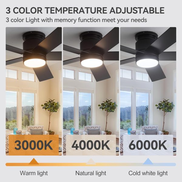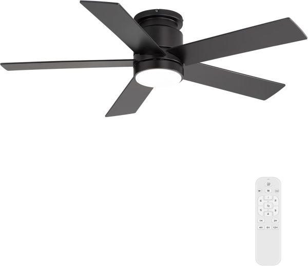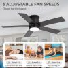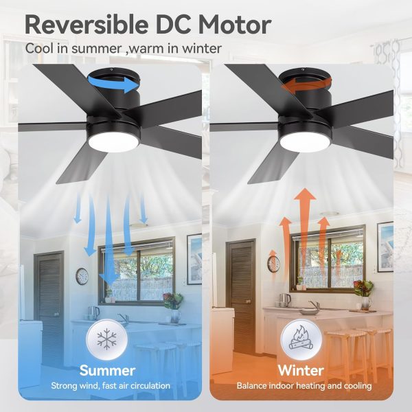 Flush Mount Ceiling Fan with Led Light Upgrade your space with our 42-Inch black ceiling fan, this indoor modern ceiling fan combines powerful performance with modern aesthetics. Featuring 5 durable plywood blades, it delivers optimal airflow while maintaining quiet operation. The reversible DC motor ensures energy efficiency, allowing you to enjoy comfort year-round.