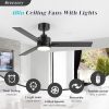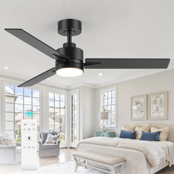 Modern Black Ceiling Fans with LED Light Our 48 inch 3 blades modern black ceiling fans are highly energy efficient, avoiding up to 80% of power loss compared to traditional fans. Ceiling fan damp-rated design, making it perfect for any room in your home or office – including bedroom, living room, office, kitchen, study room and covered patio, porch, gazebo and so on.