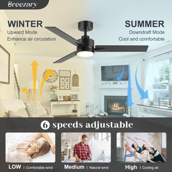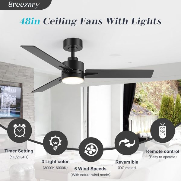 Quiet DC Motor & 3 Reversible Blades This 48'' industrial ceiling fans features super silent DC motor, with a noise level below 35dB, will not affect work, sleep or learning. This black ceiling fan with light has 3 blades make the air volume larger and smoother. In the summer, it runs downdraft mode and has a good airflow to keep you cool. In the winter, it runs in updraft mode to rotate and circulate warm air during winter.