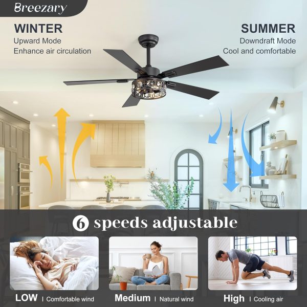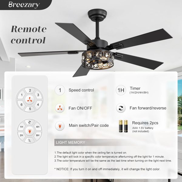 Dual Finish 5 Blades This 48" modern ceiling fan combines sleek industrial style with a striking metal cage light fixture. The dual-sided blades, with one side in black and the other in brown, seamlessly complement your home decor. With 5 blades and open-cage lighting, it brings both comfort and character to your living room, dining area, or office.