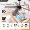 Quiet Reversible DC Motor This 48-Inch black ceiling fan features a pure copper DC motor with a speed of 180RPM, ensuring quiet operation under 35dB and energy savings of 20-30%. Its sleek design offers both safety and style. The reversible motor delivers cool air in the summer and circulates warm air in the winter, ensuring year-round comfort