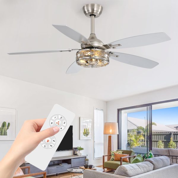 48 Inch; Ceiling Fans with Lights and Remote, Low Profile Flush Mount Caged Ceiling Fan Reversible DC Motor 5 Blades Fandeliers with Enclosed Light for Home Living Room Bedroom (Nickel)