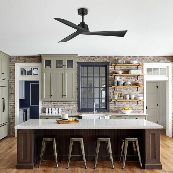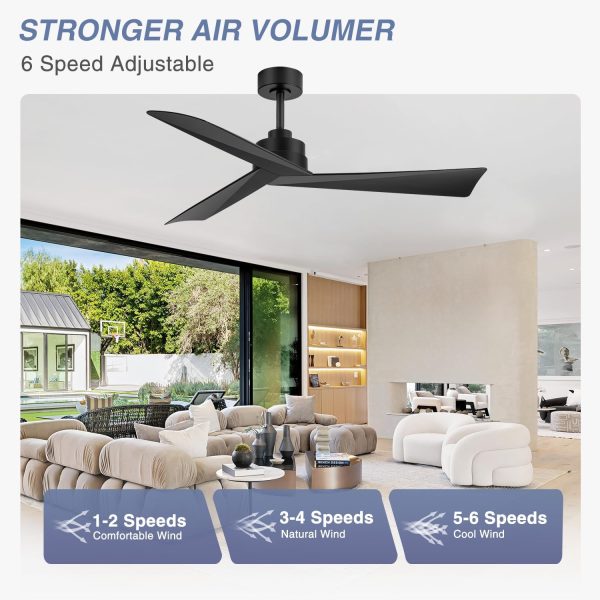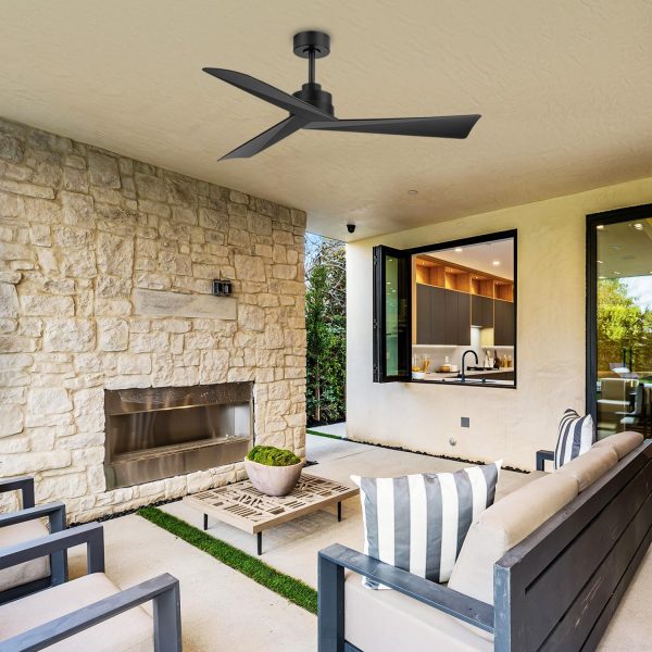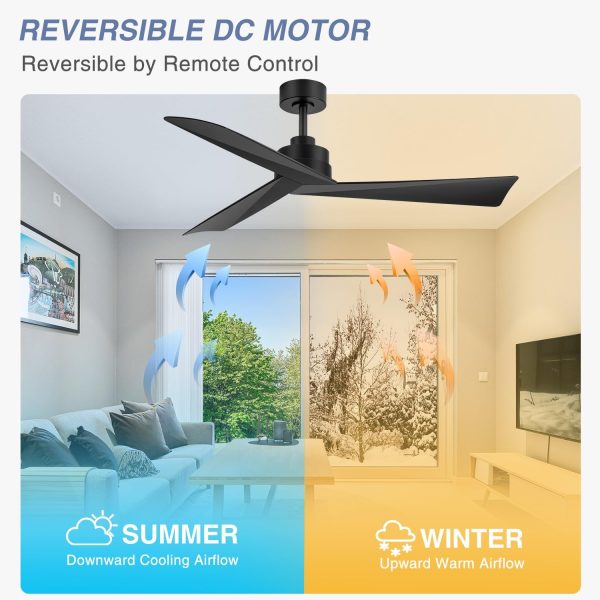 3 Reversible Blade & Quiet DC Motor: With super silent DC motor, this 52 in matte black ceiling fans without light runs smoothly with no noise and deliver strong airflow. 3 reversible blades provide downward wind to keep your room cool in summer, while in winter, you can change it to upward to enhance the airflow and keep your room warm.