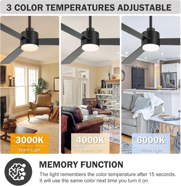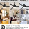 3 Color Temperature Led Light Customize the lighting to suit your needs with the 52-inch fan, featuring an 18W LED light panel that offers 3 adjustable color temperatures (3000K warm light, 4500K natural light, and 6500K cool light). Perfect for creating the ideal ambiance in bedrooms, study rooms, or for nighttime use