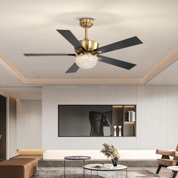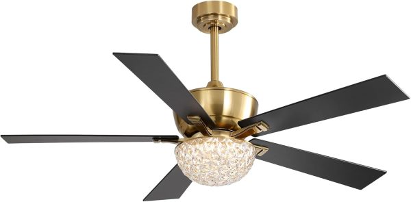 Be the first to review “52 Inch Ceiling Fan with Lights Remote Control, Modern Gold and Black Ceiling Fan with Crystal Chandelier, Reversible AC Motor, 5 Blades, LED Light Fandelier for Bedroom”