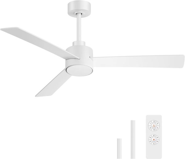 Widely Applications: This 52 inch white ceiling fan with no lights is extra large and enough for large rooms up to 300 sq. fit such as outdoor patio, garage, farmhouse, indoor living room, dinning room, bedroom, kitchen, office, shop, studio, bar etc. It is designed to meet the demands of larger space.