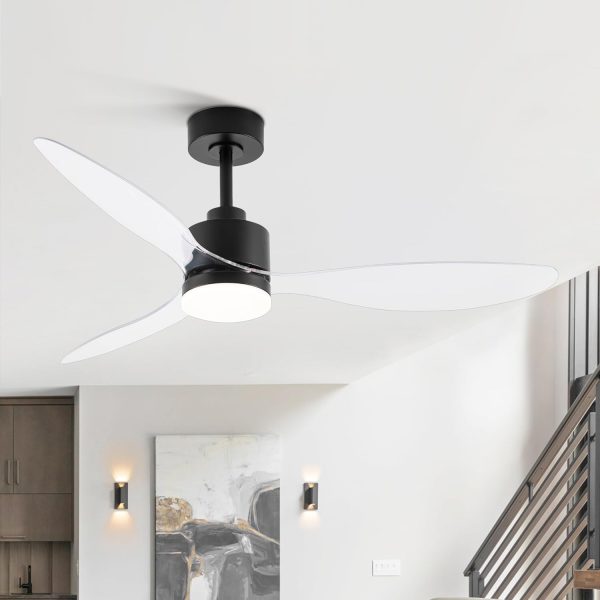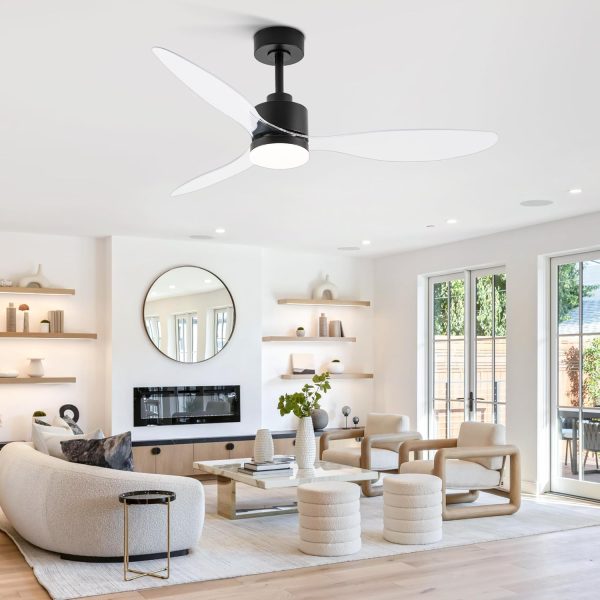 52 inch Ceiling Fans with Lights and Remote, 3 Transparent Blades, Reversible DC Motor, 3 Color Temperature, 6-Speed, LED Light Chandelier for Bedroom Kitchen