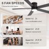 6-Speed Reversible DC Motor This 52" modern ceiling fans with led light fixture is equipped with an ultra quiet dc motor. 6 wind speeds delivers airflow up to 4800 CFM. Reversible dc ceiling fan with light keep room cool with noise under 30dB. The reverse button on the remote control allows you to easily switch between downward mode and upward mode.