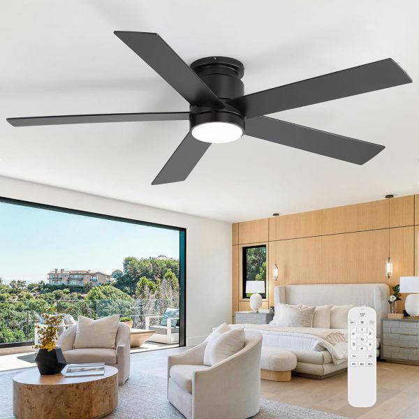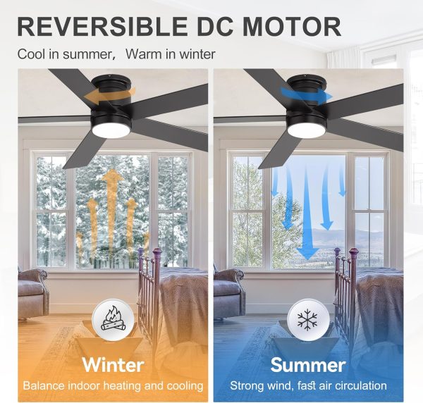 Flush Mount Ceiling Fan with Led Light Upgrade your space with our 52-Inch black ceiling fan, this indoor modern ceiling fan combines powerful performance with modern aesthetics. Featuring 5 durable plywood blades, it delivers optimal airflow while maintaining quiet operation. The reversible DC motor ensures energy efficiency, allowing you to enjoy comfort year-round.
