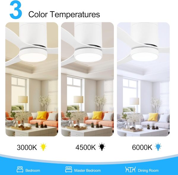 Ceiling Fan with Remote: Operated effortlessly with remote control, this fan offers a range of customizable features, including the choice of 3 light color temperatures, 6 fan speeds, and 3 timers(1/4 hours). It has a button to silence the beep, allowing you to switch it on and off easily. Enjoy a peaceful sleep environment without disturbing you. (Tips: Remote control requires 2 AAA batteries, not included)