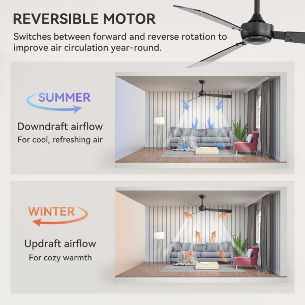 Quiet Reversible Motor: This ceiling fan features a high-quality DC motor that smoothly shifts between strong cooling airflow in summer and gentle warm-air circulation in winter, providing comfort all year round. Operating below 35dB, the motor delivers steady, powerful airflow while maintaining quiet performance