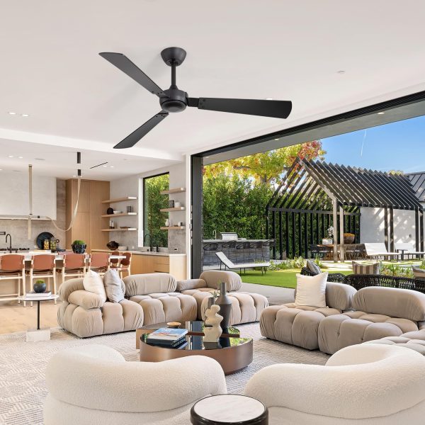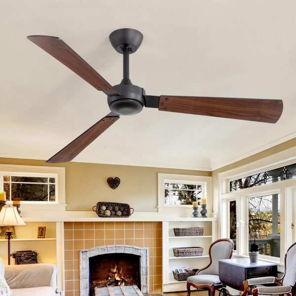 Ceiling Fans with Dual-Sided Blades: This 52-inch ceiling fans feature reversible wood-grain and black blades, pairing industrial metal housing with a modern rustic look. Designed without lights, they deliver strong airflow for living rooms, bedrooms, dining areas, and home offices