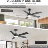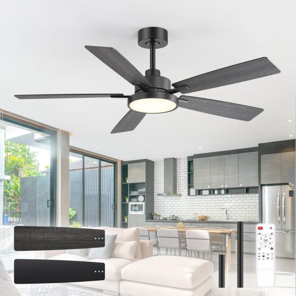 Dual Finish Blades & Dimensions The blade of this 52in ceiling fans finished with Black and Charcoal Wood-Grain , the blades have smooth and delicate surface, add modern design to your space. Pick the color that best fits your space. This farmhouse ceiling fan is 52 x 52 x 10.5 Inch and 52 x 52 x 15.5 Inch.(With 5" and 10" Down Rod)