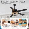 Farmhouse Black Ceiling Fans Remote Control With the remote controller included, you can set the the fan speed of this 52-inch indoor large ceiling fans easily to a cozy mode. 6 wind speed gears for choice. Light On/Off, 1H, 2H, 4H, 8H timer function, reverse function.