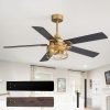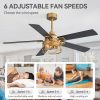 Modern Ceiling Fan with Caged Light Upgrade your space with our 52-Inch rustic gold ceiling fan caged chandelier, this modern ceiling fan combines powerful performance with modern aesthetics. Featuring 5 durable plywood blades, it delivers optimal airflow while maintaining quiet operation. The reversible DC motor ensures energy efficiency, allowing you to enjoy comfort year-round.