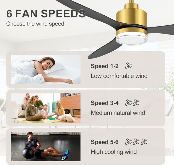 Quiet & Energy-Efficient DC Motor Equipped with a 6-Speed reversible DC motor, this 52 Inch industrial gold and black ceiling fan delivers strong airflow with whisper-quiet performance. Enjoy cool breezes in summer and gentle air circulation in wintersaving up to 70% more energy than traditional AC motors.