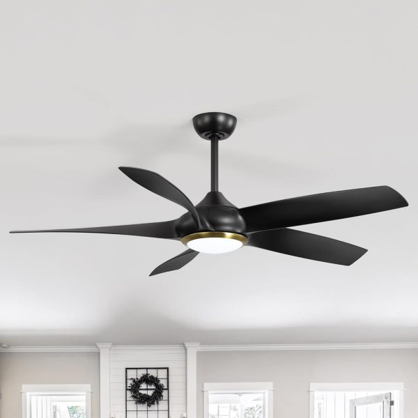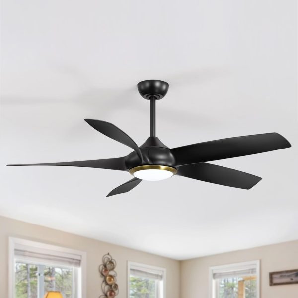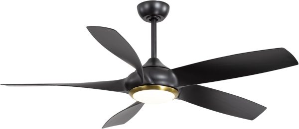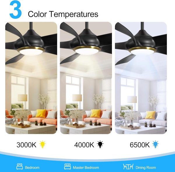 54 inch Farmhouse Ceiling Fans with Lights Remote Control, 5 Reversible Blades, Quiet DC Motor, Timer, 6-Speed, 3 Color Light Led Chandelier Ceiling Fans for Bedroom (Black & Gold)