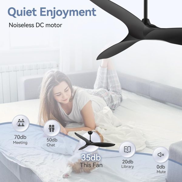 3 Reversible Blade & Quiet DC Motor With super silent DC motor, this 56 inch large ceiling fans without lights runs smoothly with lower noise under 30db and deliver strong airflow. 3 reversible blades provide downward wind to keep your room cool in summer, while in winter, you can change it to upward to enhance the airflow and keep your room warm.