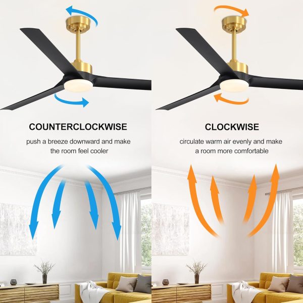 3 Reversible Blade & Quiet DC Motor: With super silent DC motor, this Breezary black and gold ceiling fans with led lights runs smoothly with no noise and deliver strong airflow. 3 reversible blades provide downward wind to keep your room cool in summer, while in winter, you can change it to upward to enhance the airflow and keep your room warm.
