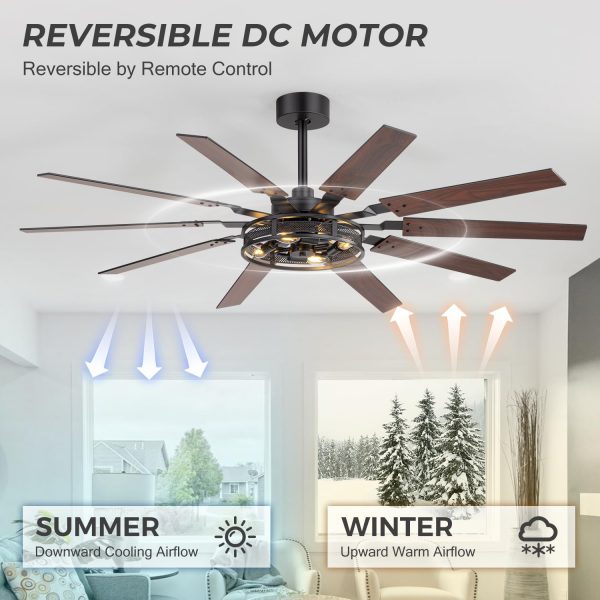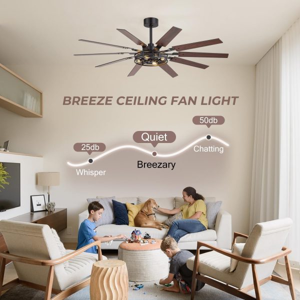 10 Reversible Blade & Quiet DC Motor: With super silent DC motor, this Breezary 60" large ceiling fans with enclosed chandelier lights runs smoothly with low noise and deliver strong airflow. 10 reversible blades provide downward wind to keep your room cool in summer, while in winter, you can change it to upward to enhance the airflow and keep your room warm.