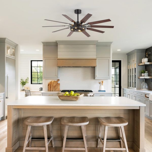 Dual Indoor/Outdoor Versatility: This 60 inch ceiling fan with light chandelier is extra large and enough for rooms 300-450 sq.ft, ideal for indoor living room, kitchen, dinning rooms, bedrooms, dens, offices, shops, studios, bars, outdoor patios, covered porches, and sunrooms. Designed to meet the demands of different space.