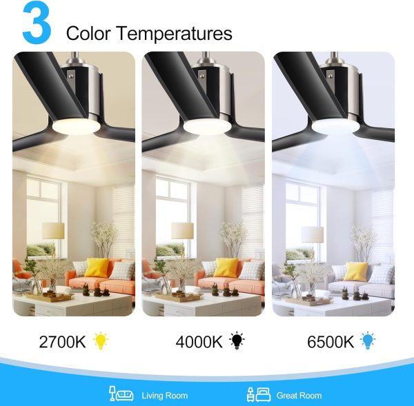 • Ceiling Fan with RemoteWith the remote controller included, you can set the fan speed of this downrod mount ceiling fans easily to a cozy mode. 6 wind speed gears for choice. 3 color temperature(3000k, 4500k, 6000k), 1H, 2H, 4H, 8H, 12H timmer function. Please kind note that batteries for the remote are NOT INCLUDED.