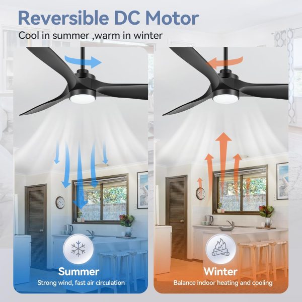60-Inch Large Ceiling Fan Light Upgrade your space with our 60-Inch large ceiling fan, this large fan combines powerful performance with modern aesthetics. Featuring 3 durable abs blades, it delivers optimal airflow while maintaining quiet operation. The reversible DC motor ensures energy efficiency, allowing you to enjoy comfort year-round.