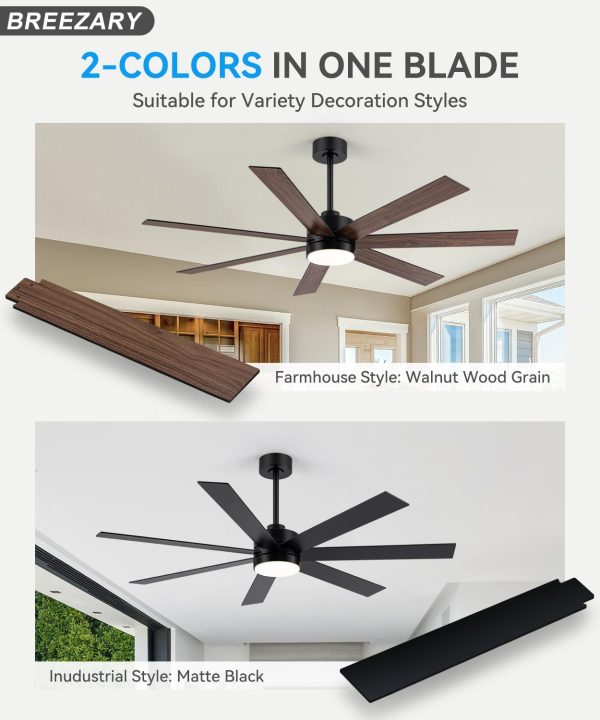 • Dual Finish Blades & Dimensions This living room ceiling fans finished with black and dark walnut blades, the blades have smooth and delicate surface, add modern design to your space. Pick the color that best fits your space. This farmhouse ceiling fan is 62 x 62 x 15.4 Inch and 62 x 62 x 21.4 Inch.(With 6" and 12" Down Rod)