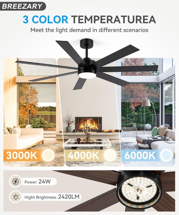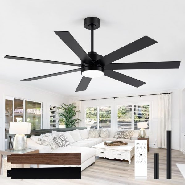 • Large Balck Ceiling Fans Remote Control With the remote controller included, you can set the the fan speed of this 62-inch farmhouse large ceiling fans easily to a cozy mode. 6 wind speed gears for choice. 3 color temperature, 1H, 2H, 4H, 8H timer function, reverse function.