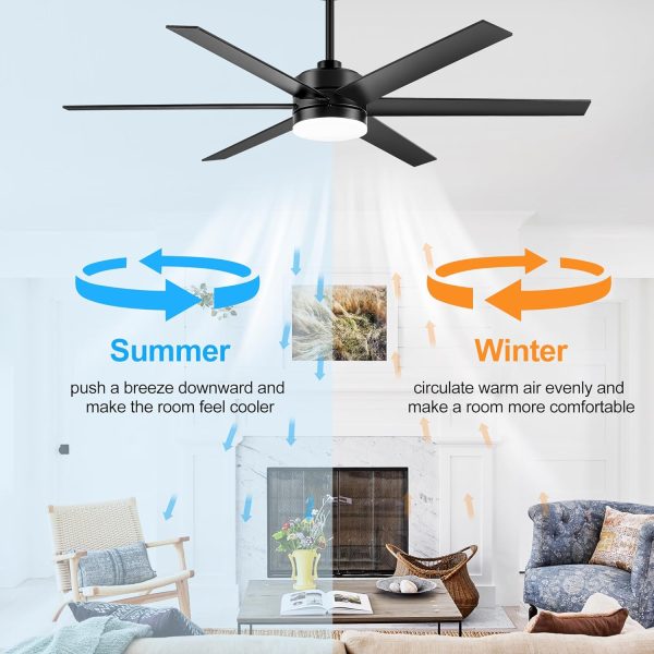 • 6 Reversible Blades & Quiet DC Motor With super silent DC motor, this Breezary 65 inch industrial black ceiling fans with led light chandelier runs smoothly with low noise under30 dB and deliver strong airflow. 6 reversible blades provide downward wind to keep your room cool in summer, while in winter, you can change it to upward to enhance the airflow and keep your room warm.