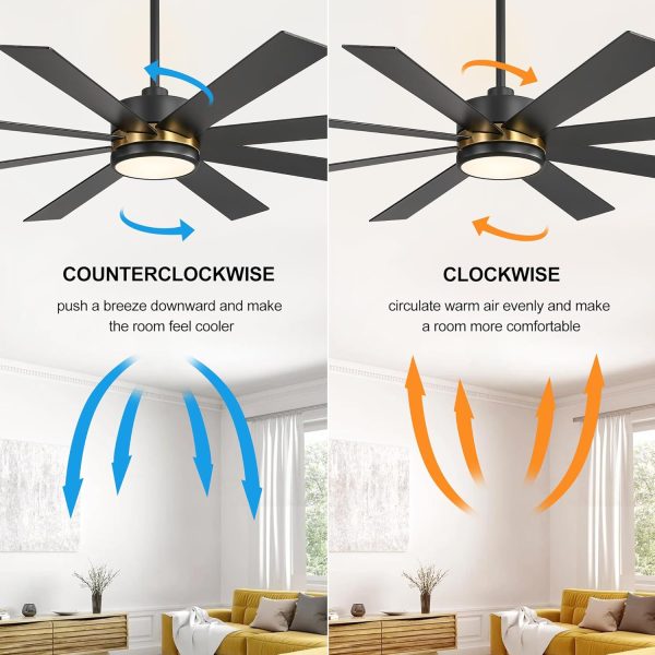 8 Reversible Blade & Quiet DC Motor: With super silent DC motor, this Breezary 65" large ceiling fans with led lights runs smoothly with low noise and deliver strong airflow. 8 reversible blades provide downward wind to keep your room cool in summer, while in winter, you can change it to upward to enhance the airflow and keep your room warm.