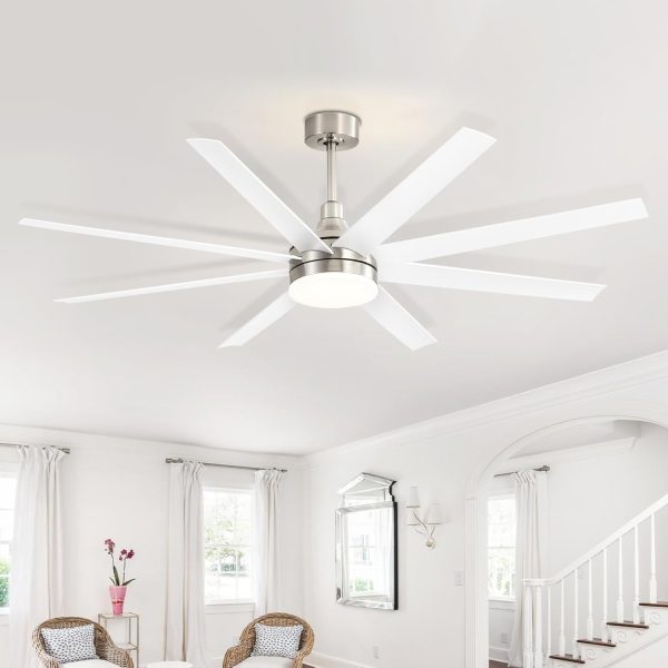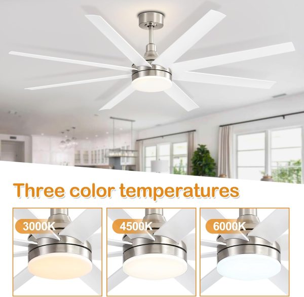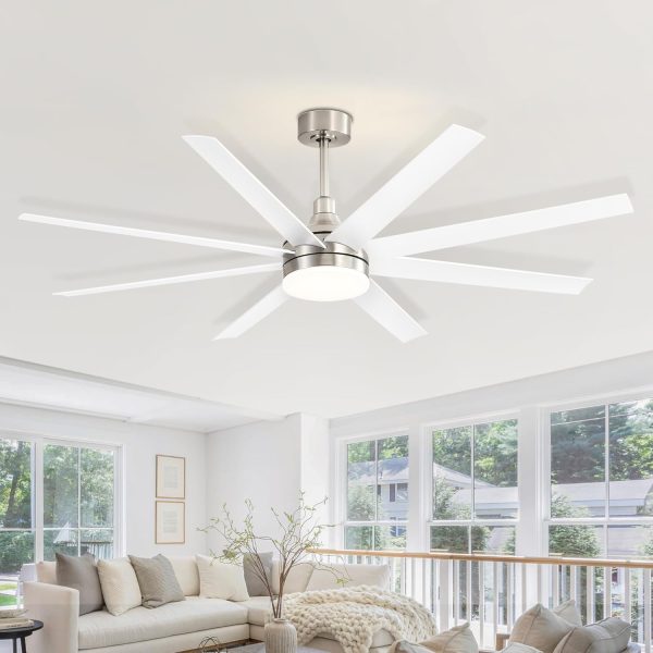 8 Reversible Blades & Quiet DC Motor: With super silent DC motor, this 65 inch industrial ceiling fans with led lights runs smoothly with lower noise under 35db and deliver strong airflow. 8 reversible blades provide downward wind to keep your room cool in summer, while in winter, you can change it to upward to enhance the airflow and keep your room warm.