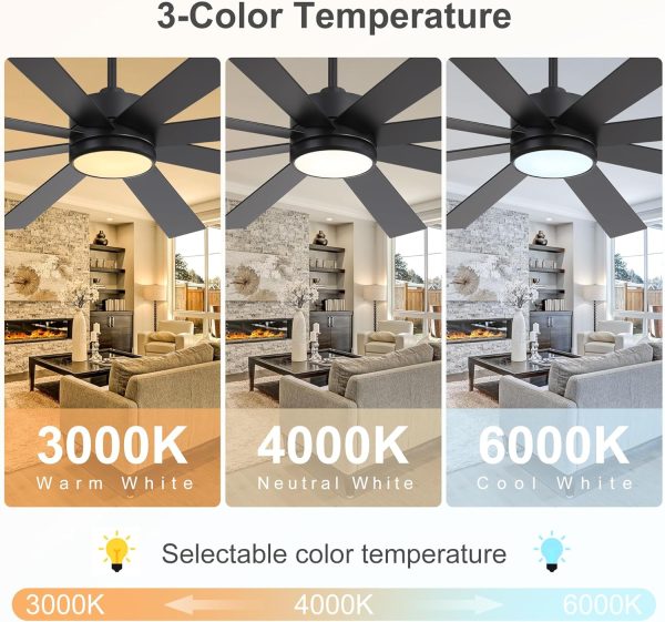 Multi-Function Remote Control Operate all features with ease adjust 6 fan speeds, control the fan and light separately, set 1/4/8-hour timers, and choose from 3 color temperatures (3000K/4000K/6000K) to create the perfect atmosphere for relaxing, reading, or working out. Enjoy year-round comfort with the forward/reverse function, and a mute option that turns off button sounds for a quieter experience