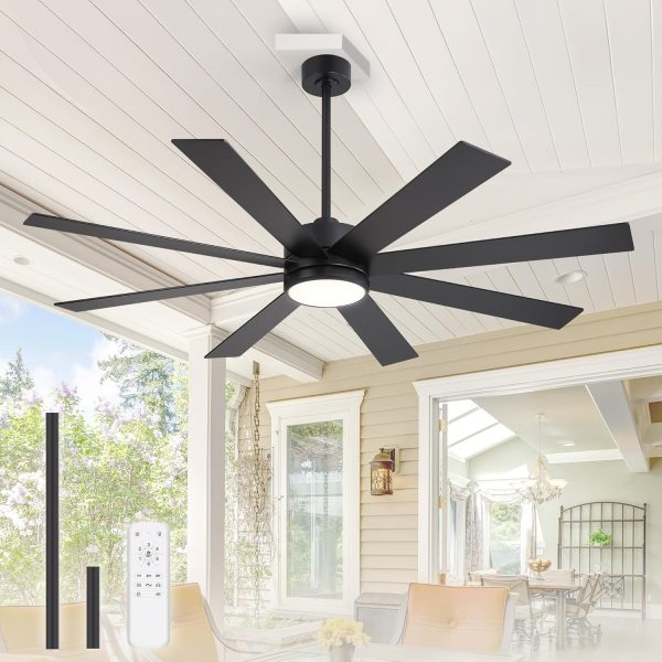 65 Inch 8-Blade Ceiling Fan Includes 6" and 20" downrods for installation on ceilings 13"C35" high and supports slopes up to 15. Designed for large rooms from 400C600 sq. ft., it features a sleek black 8-blade design that blends modern and industrial styles perfect for living rooms, libraries, cafes, garages, or covered patios