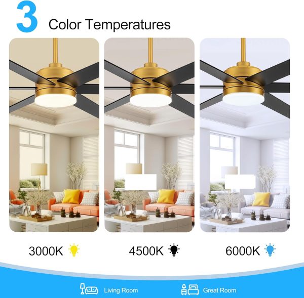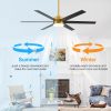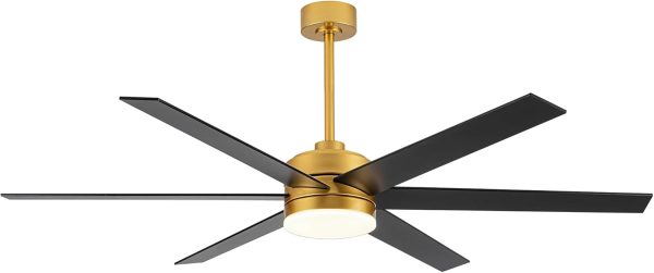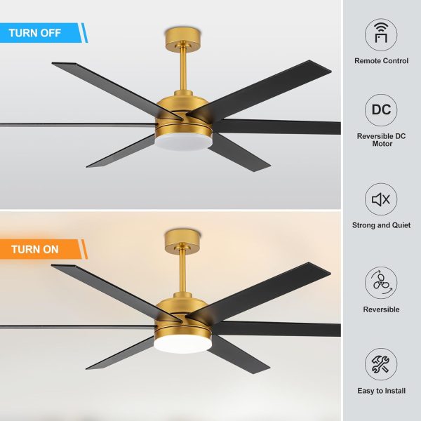 6 Reversible Blade & Quiet DC Motor With super silent DC motor, this 65" industrial gold ceiling fans with led light runs smoothly with low noise under 35db and deliver strong airflow. 6 reversible blades provide downward wind to keep your room cool in summer, while in winter, you can change it to upward to enhance the airflow and keep your room warm.