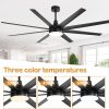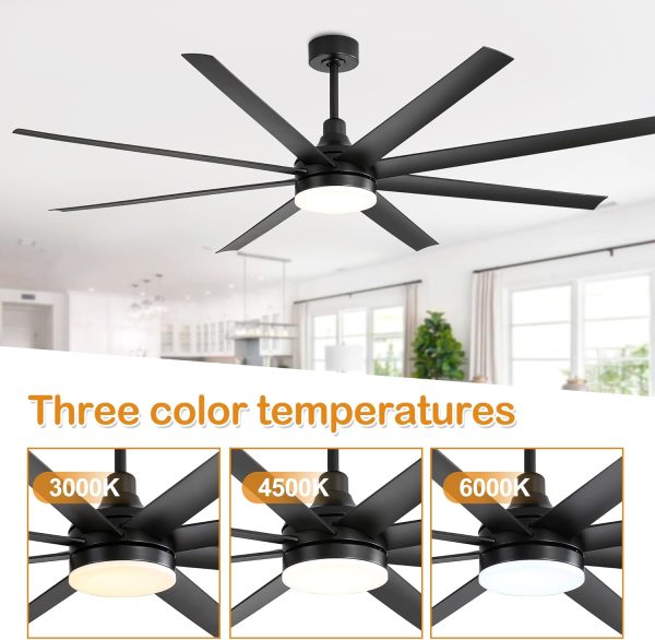 72 Inch; Black Ceiling Fans with Lights and Remote, 8 ABS Blades, 6-Speed Reversible DC Motor, 2 Downrods, 3 Color Led Light, Large Industrial Indoor Ceiling Fan Fandeliers for Bedroom Living Dining Room