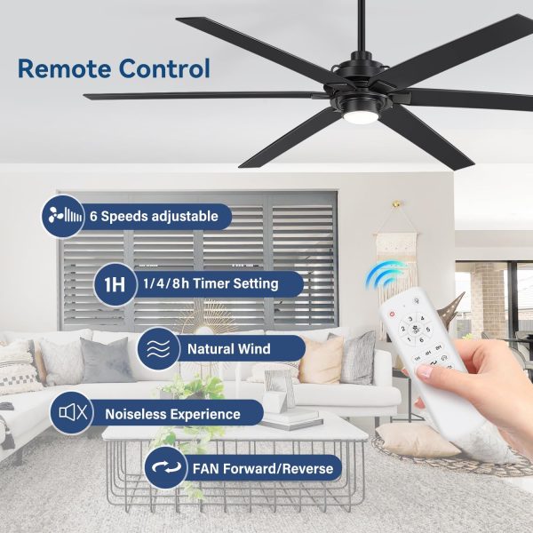 72 Inch Ceiling Fans with Lights and Remote, Modern Black Ceiling Fan with Reversible DC Motor, Outdoor & Indoor 6 Blade LED Light Industrial Chandelier for Living Room Bedroom