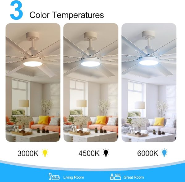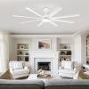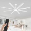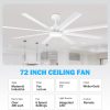 72 inch Ceiling Fans with Lights, Large White Industrial Ceiling Fan with LED and Remote Control, 6 Speeds Reversible DC Motor and 8 Blades Ceiling Fan for Indoor/Outdoor Patio Bedroom Living Room