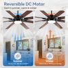 72 Inch; Farmhouse Ceiling Fans with Lights and Remote, 6-Speed Quiet DC Motor, Dual Finish 8 Reversible Blades, 3 Color Led Light, Industrial Indoor Large Ceiling Fans for Bedroom, Black