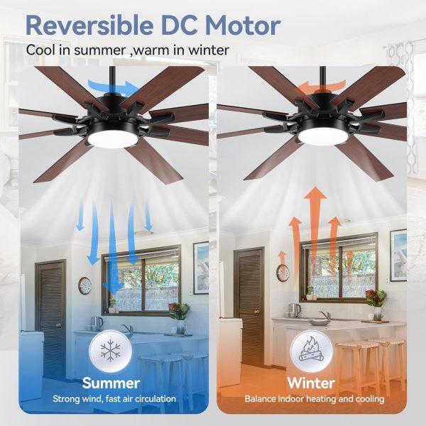 • Industrial 72" Ceiling Fans with Led Light Upgrade your space with our 72-Inch large black ceiling fan, this large fan combines powerful performance with modern aesthetics. Featuring 8 durable plywood blades, it delivers optimal airflow while maintaining quiet operation. The reversible DC motor ensures energy efficiency, allowing you to enjoy comfort year-round.