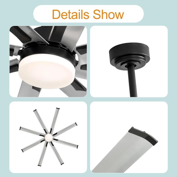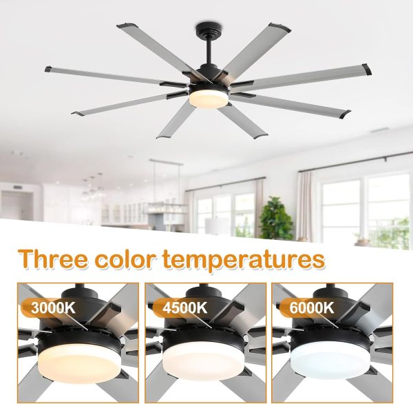 8 Aluminum Blades & Quiet Reversible DC Motor With super silent DC motor, this 72 inch modern large ceiling fans with led light fixture runs smoothly with low noise under 35dB. 8 reversible aluminum blades provide downward wind to keep your room cool in summer, while in winter, you can change it to upward to enhance the airflow and keep your room warm.