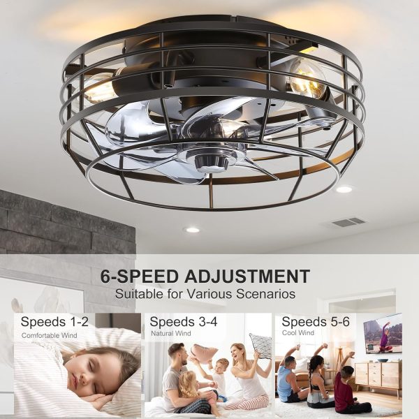6 Wind Speeds & Timer This flush mount ceiling fan features 6 adjustable wind speeds and a 1/2/4/8-hour timer. With separate controls for the fan and light via remote, you can easily adjust airflow and lighting to match your needs and preferences