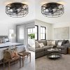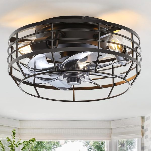 Modern Industrial Ceiling Fan Light This small ceiling fan light blends industrial charm with modern simplicity. The matte metal cage offers a sleek, enclosed design that enhances safety and saves space, while the semi-transparent black blades deliver a subtle modern flair. Perfect for bedrooms, kitchens, or compact living areas seeking a stylish yet functional update